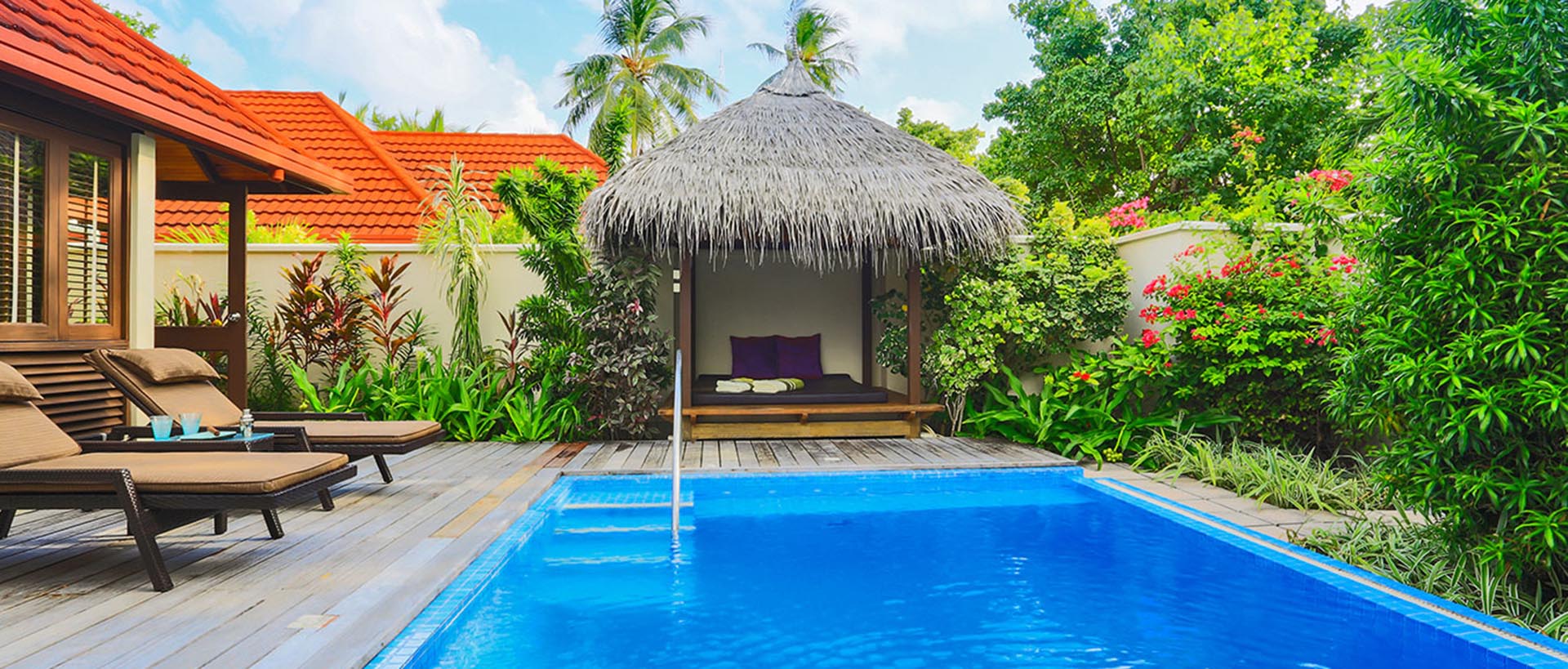 В номерах Deluxe Pool Villa: кондиционер и вентилятор, сейф, два телевизора, летний душ, душевая в номере, ванна, халаты и фен, мини-бар, открытый частный бассейн с джакузи, частная беседка, бесплатный Интернет, DVD-плеер, мини-колонки Bose с Bluetoot, утюг и гладильная доска, набор для приготовления чая и кофе, кофе-машина Nespresso, винная коллекция в номере, ежедневный эксклюзивный завтрак в ресторане Thila.